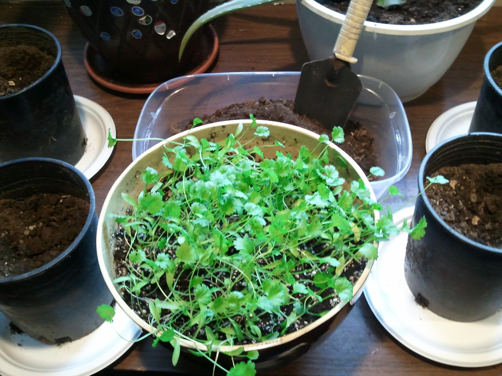 This one, however, was taken this afternoon (12:17 pm on June 8, 2012) and it shows significant progress. I was afraid that I had lost most of these--but chances are at least one per pot is going to take. Behold, the day after Cutting the Cilantro Cluster: